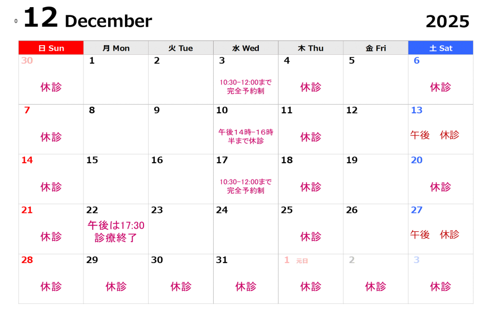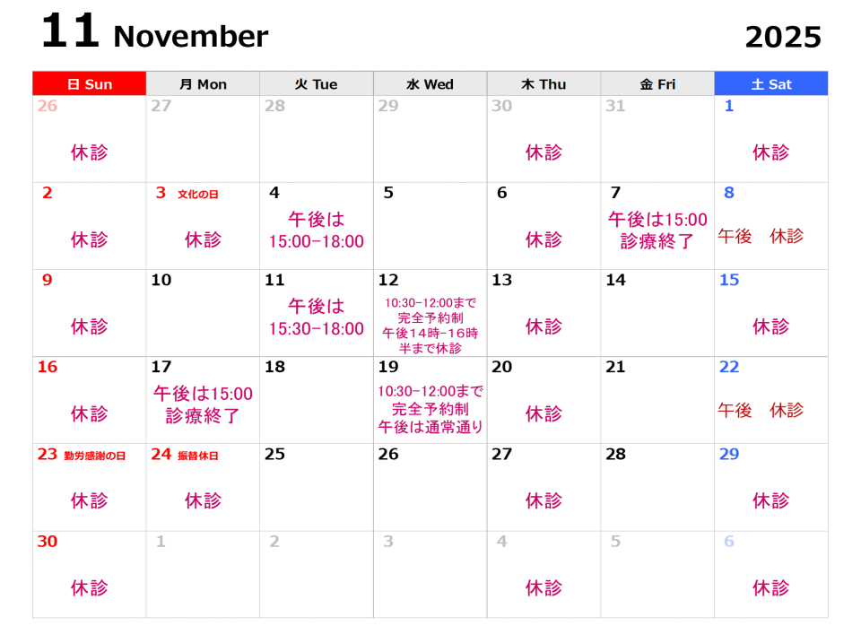 ※受付終了は30分前です(17:15を過ぎての来院予定の方は事前にご連絡ください)